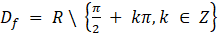 Dziedzina funkcji f jest taka sama, jak dziedzina funkcji tangens, ponieważ jej wykres nie był przesunięty wzdłuż osi OX.