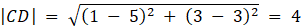 Figura ABCD jest kwadratem, zatem jest ona figurą środkowosymetryczną. Jej środek symetrii znajduje się na przecięciu przekątnych, czyli w punkcie o współrzędnych