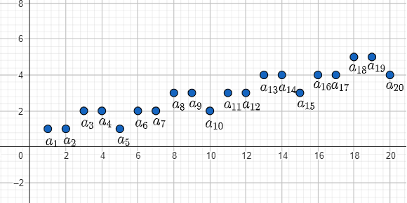 W tym zadaniu musisz wyznaczyć 20 początkowych wyrazów tego ciągu, a następnie powinieneś przedstawić wyznaczone wyrazy na wykresie.