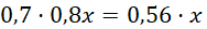Cena pełna to x. Pierwsza obniżka: 0,8x. Druga obniżka: