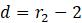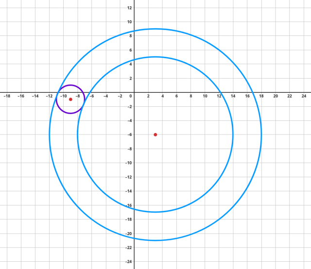 Są dwa równania okręgów: styczny wewnętrznie oraz styczny zewnętrznie: