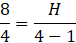 Dany jest stożek o wysokości 8 i promieniu podstawy 4. Wpisano w niego walec o promieniu podstawy 1 w sposób przedstawiony na rysunku. Oblicz objętość walca.