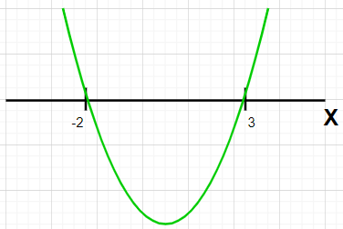 Zaznacz na osi OX rozwiązania równania. Naszkicuj parabolę skierowaną ramionami do góry, przechodzącą przez te punkty. Nie musisz wyznaczać wierzchołka paraboli.
