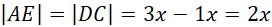 Wyznacz długość |DC| poprzez różnicę między |AB| i wyznaczoną długością |EB|: