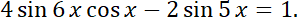 Aby rozwiązać równanie, zacznij od zastosowania wzoru na iloczyn sinusa i cosinusa dwóch różnych kątów. Następnie wymnóż wyrażenie w nawiasie przez stałą i zredukuj jednomiany podobne. Na koniec wyznacz rozwiązania równania