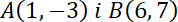 W tym zadaniu musisz na prostej przecinającej punkty A i B zaznaczyć punkty mające od punktu A odległość równą 2. Punkty A i B mają następujące współrzędne: