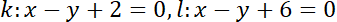 W tym zadaniu musisz obliczyć promień oraz wyznaczyć równanie okręgu, który jest styczny równocześnie do prostych k i l, wiedząc, że jego środek znajduje się na prostej