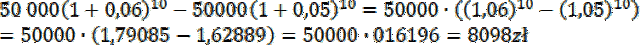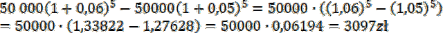 Bank przyjął na 5-letnią lokatę oprocentowaną na 5% w skali roku, kwotę 50.000 zł, a następnie udzielił tymi pieniędzmi pożyczki na 6%, ile zyskał? Ile zyskałby po 10 latach.