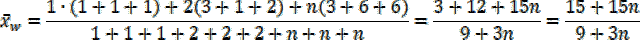 jako jedną z wag. Z treści zadania wiadomo, że średnia ważona ma być równa 3, więc do tej liczby przyrównuje się powstałe wyrażenie z