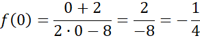 Przypomnij sobie wiadomość o ułamku zwykłym. Mianownik nie może być równy 0, więc dziedziną funkcji – przedziałem jej określoności – będą wszystkie argumenty x, które nie są czwórką. Miejsce przecięcia z osią OX obliczamy, przyrównując funkcję do zera. Miejsce przecięcia z osią OY znajdziemy, podstawiając za każdy x we wzorze liczbę zero – wynikiem będzie taki y, w którym funkcja przecina OY.