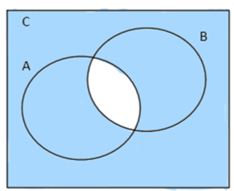 Rozwiązaniem zadania jest odjęcie części wspólnej zbiorów A i B od zbioru C, który zawiera w sobie te dwa zbiory.