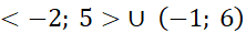 Należy zsumować oba przedziały, więc nowym najmniejszym wyrazem jest -2, a prawym otwartym największa liczba, czyli 6.