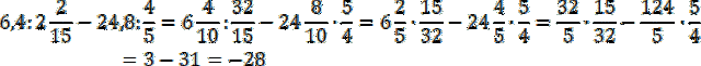 Pamiętaj o kolejności wykonywania działań: najpierw nawiasy, potem mnożenie/dzielenie, a na końcu dodawanie/odejmowanie. Ułamki dziesiętne zamień na zwykłe, skorzystaj z tego, że dzielenie ułamków możesz zamienić na mnożenie przez odwrotność drugiego, oblicz wynik powstałego działania i przedstaw w najprostszej postaci.