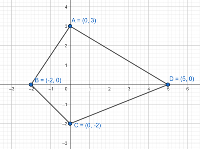 Zapisz współrzędne punktów będących wierzchołkami czworokąta przedstawionego na rysunku.