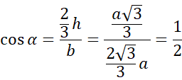 Wyznacz cosinus kąta, który z podstawą ostrosłupa tworzy krawędź boczna, jeśli dany jest ostrosłup prawidłowy trójkątny o krawędzi podstawy
