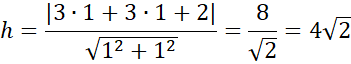 Wyznacz wysokość trójkąta ABC opuszczoną z wierzchołka C, a następnie pole tego trójkąta. A(-3,1), B(2,-4), C(3,3)