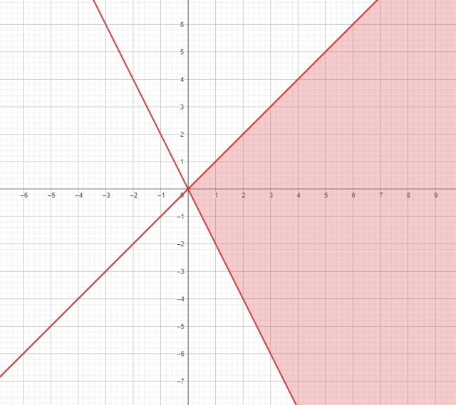 Przedstaw na płaszczyźnie zbiór punktów, które spełniają układ nierówności {xy02x+y0.