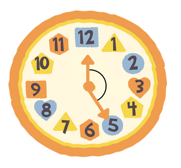 W tym zadaniu określ, jaki kąt tworzą wskazówki o podanej godzinie.