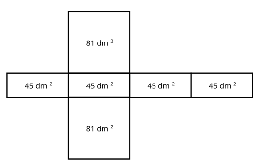 4 · 45 dm2 + 2 · 81 dm2 = 180 dm2 + 162 dm2 = 342 dm2