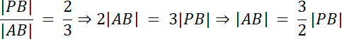 W tym zadaniu skorzystaj z informacji, że stosunki długości boków, są równe stosunkom długości wektorów i na tej podstawie wyznacz wektor PB, a następnie współrzędnie punktu P.