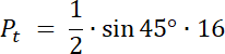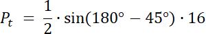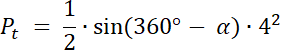 Pt–pole trójkąta, Pw–pole wycinka, r–promień koła, α–kąt wycinka koła