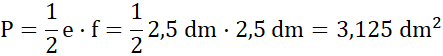 Pamiętaj, kwadrat też jest rombem, bo ma 4 boki równej długości, które są parami równe. Zamień jednostki tak, aby były takie same. Skorzystaj ze wzoru: pomnóż jedną drugą i długości przekątnych.