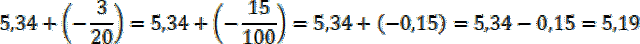 Rozszerz ułamek zwykły do mianownika równego 100 i zapisz go w postaci dziesiętnej (po przecinku znajduje się liczba z licznika). Zastąp dodawanie odejmowaniem liczby o przeciwnym znaku. Odjemna jest większa od odjemnika, więc wynik będzie dodatni.