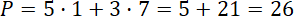 Zauważ, pierwszy iloczyn to pole prostokąta o wymiarach 1 na 5 kratek, takie długości ma fragment na górze sześciokąta, a więc należy do niego dodać brakującą cześć, czyli prostokąt o wymiarach 3 na 7 kratek.