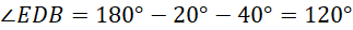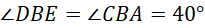Kąt DBE jest równy kątowi CBA (obliczony w podpunkcie a). Odejmij miary znanych kątów od