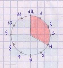 Podziel tarczę na równe części i zamaluj odpowiednią ich ilość. Możesz wykorzystać też informację o minutach i położeniu wskazówki minutowej.