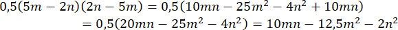 W tym zadaniu przedstaw połowę iloczynu liczb 5m - 2n i 2n - 5m w postaci sumy algebraicznej.