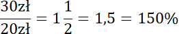 Kwota 30 zł stanowi 150% kwoty 20zł.