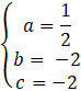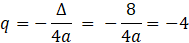 Podstaw pod wzór na rzędną współrzędną wierzchołka paraboli wartość wyróżnika i przyrównaj współrzędną do danej w poleceniu wartości. Z otrzymanego równania oblicz wartość współczynnika a. Podstaw pod wzór na odciętą współrzędna paraboli wyliczony współczynnik a i przyrównaj współrzędną do danej w poleceniu wartości. Z otrzymanego równania oblicz współczynnik b. Podstaw wartości a i b do wzoru na wyróżnik równania kwadratowego i przyrównaj go do podanej wartości. Z otrzymanego równania oblicz wartość współczynnika c.