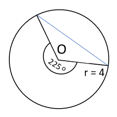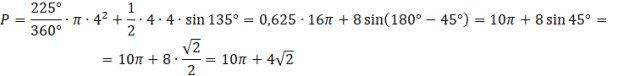 Aby obliczyć pole zaznaczonego odcinka, do pola wycinka kołowego wyznaczonego przez kąt środkowy 225