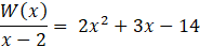 | 2 | 2 | 4 – 1 = 3 | 6 – 20 = -14 | -28 + 28 = 0 |