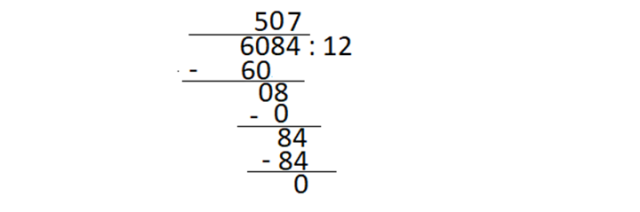 W tym zadaniu musisz wykonać dzielenie pisemne 6084: 12.