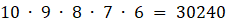 Przestrzeń zdarzeń elementarnych można opisać na kilka sposobów. Wybierz jeden z nich i opisz przestrzeń zdarzeń elementarnych. Pierwszą z liczb można wybrać na 10 sposobów, drugą na 9, trzecią na 8, czwartą na 7 i piątą na 6. Oblicz więc