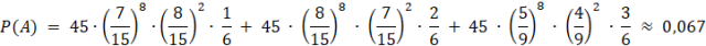 A – zdarzenie: wylosowano dwie kule w różnych kolorach 8 razy