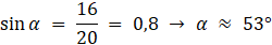 Aby obliczyć sinus kątów w tym przypadku, podziel wysokość graniastosłupa przez długość przekątnych graniastosłupa: