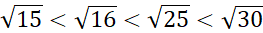 Oszacuj liczby, które znajdują się pomiędzy podanymi pierwiastkami. Znajdź liczby, które możemy łatwo spierwiastkować, a znajdują się pomiędzy liczbami, które są pod podanymi pierwiastkami.