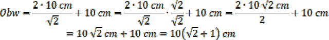 W tym zadaniu musisz obliczyć obwód trójkąta prostokątnego równoramiennego, znając długość jego przeciwprostokątnej: 10 cm.