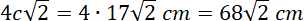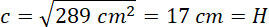 Wysokość prostopadłościanu również wynosi 17 cm, więc przekątna prostopadłościanu tworzy trójkąt prostokątny równoramienny. Jej długość będzie wynosić