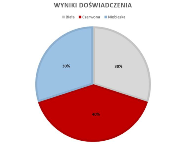 W tym podpunkcie musisz narysować diagram procentowy kołowy ilustrujący wyniki doświadczenia.
