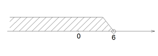 Zaznacz na osi liczbowej kółeczko otwarte – oznacza przedział liczb otwarty (czyli liczba 6 nie zawiera się w zbiorze rozwiązań).