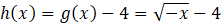 Wykres funkcji h powstał w wyniku przesunięcia wykresu funkcji g o 4 jednostki w dół, co jest jednoznaczne z tym, że wykres funkcji h powstał w wyniku przesunięcia wykresu funkcji g o wektor