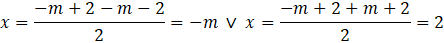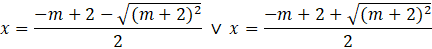 Gdy znamy już deltę pozostaje obliczyć rozwiązania tego równania, w zależności od parametru m, korzystając ze wzorów na miejsca zerowe funkcji kwadratowej: