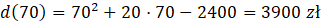 Podstaw do funkcji jako n liczbę 70, wyliczysz wartość funkcji będącej dochodem stolarza..