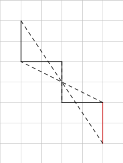 Linie przerywane wyznaczają środek symetrii nowej figury.