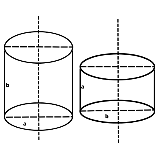W tym zadaniu musisz obliczyć, który z tych walców będzie miał większą objętość, a który będzie miał większe pole powierzchni całkowitej, jeżeli pierwszy z nich został otrzymany w wyniku obrotu pewnego prostokąta wokół krótszego boku oraz walec, który otrzymamy w wyniku obrotu tego samego prostokąta wokół dłuższego boku.