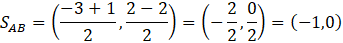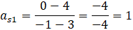 Prosta s1 zawierająca środkową wychodzącą z boku AB, przechodzi przez punkty SAB oraz C. Więc jej współczynnik kierunkowy możesz wyliczyć, ze wzoru na współczynnik kierunkowy prostej przechodzącej przez punkty (x1, y1) oraz (x2, y2).